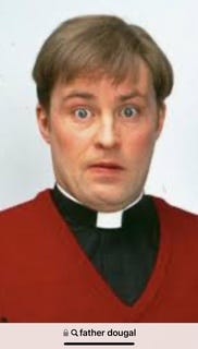 After a long day at the beach yesterday we got up this morning to a special kind of chaos that can only to be found in a camper van. I surveyed the devastation. Yep, I had totally lost control of my domain. I had no idea where anything was, the floor was full of sand and socks, the laundry was piling up and my hand towel looked like I’d dried a muddy dog with it. Actually, I had probably dried a muddy dog with it. In the middle of all this Paddy managed to perform his daily spilling trick, where he manages to knock over something containing fluid just by looking at it. Then we both banged our heads on some cupboards, and I trapped my hand in a drawer. We were moving on to St Ives, so I attempted to organise the inside and sent paddy to do ‘outside’ things. Paddy will only do the outside things because he is such a clumsy lummox that when he is inside the van he just sits there, motionless, clinging to the arms of the swivel seat with a facial expression that’s not unlike that of Father Dougal at his most perturbed. See attached photo.