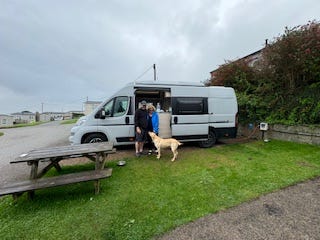 The last 4 days went by in a blur. Apart from a lovely few hours on the beach at some point, it continued to rain but thankfully we had Ali and Dave to cheer us up. The weather did nothing to help me convert Paddy to the world of campervanning which he described at various points as: