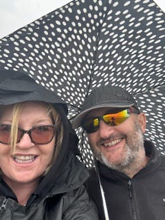 Things are looking up. It’s stopped raining and Paddy’s mood has lightened now that we have discovered that he hasn’t got flu/covid/a chest infection. The source of his ills is, in fact, some lavender body lotion that I accidentally packed and he’s allergic to lavender. Whoops! If he thought this camping trip was an attempt to kill him and claim on the insurance before, then now, he’s convinced. Oh well, it will keep him on his toes.