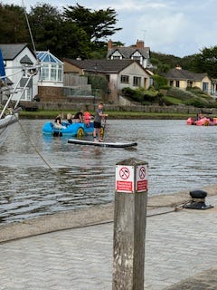 So off we went on our hire-bikes to Padstow. It’s a beautiful, scenic ride but ‘baboon’s arse’ started kicking in after the first 2 miles. Can I point out that most men my age are so embarrassed by ‘women’s issues’ that I could fuck off to Spain for a fortnight and on my return, when asked where I had been, could say “for some tampons” and that would be the end of the questioning. So, imagine how thankful I was to have Paddy on hand to mansplain to me how cycling can affect vaginas and advise me how to cycle in such a way as to relieve pressure on said area. As all us ladies know, there is nothing that men don’t know about vaginas, so I was pleased that he was on hand to provide such sound advice., just before I pushed him off his bike.